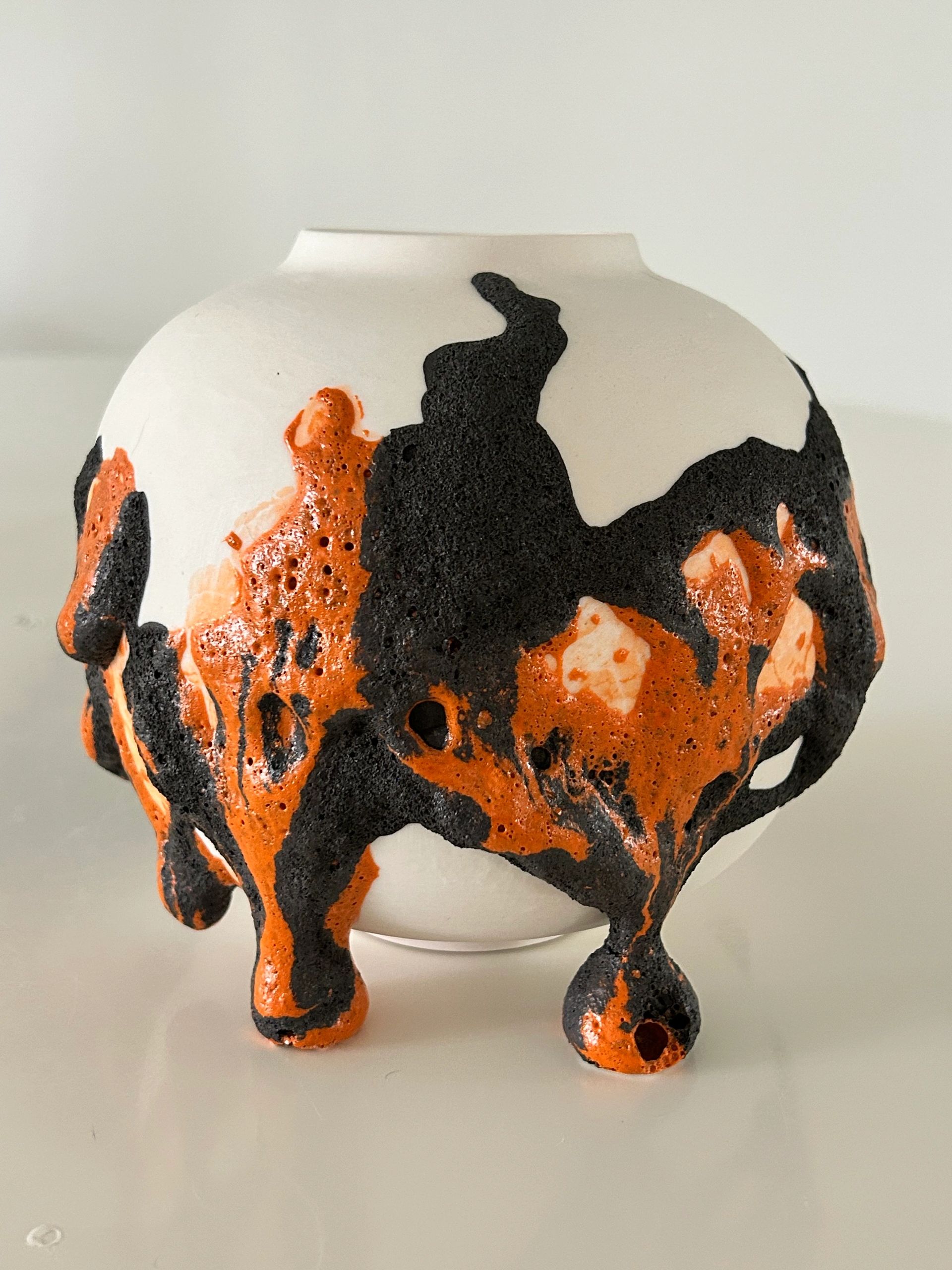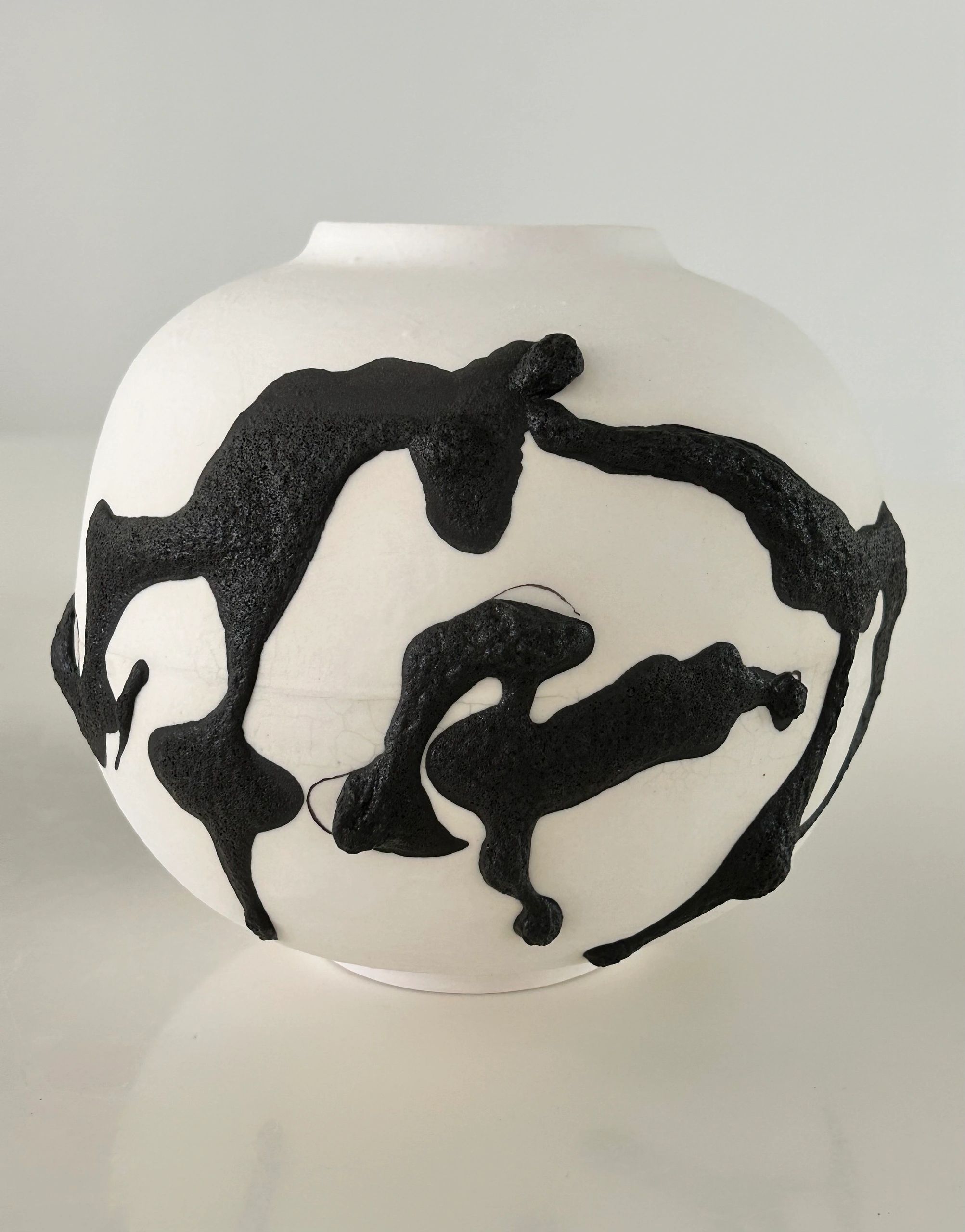 My work explores the possibility of existence within a dead sea—the persistence of life, movement, and transformation in environments defined by stillness. Living in the desert, where an ancient ocean once covered the land, I regard this landscape as a silent geological archive—a record of forms that have endured, eroded, and resurfaced through time. My practice emerges from that continuum of memory and metamorphosis. Each sculpture begins as a soft assemblage of fabric, yarn, or discarded textile, built intuitively by hand. Over time, I brush layer upon layer of porcelain slip onto the surface, allowing the material to gradually saturate and harden the form. Pigments are added between layers, creating subtle tonal shifts that suggest sedimentary accumulation. When the work is fired, the original structure burns away, leaving a translucent porcelain remnant—a relic and a record. These forms exist between the organic and the mineral, the living and the fossilized. They serve as meditations on endurance, loss, and renewal—reminders that even within desolation, transformation continues to unfold. In addition to porcelain’s inherent translucency, my sculptural works often incorporate LEDs, fiber optics, and internal lighting systems. These elements activate the ceramic surface from within, revealing subtle gradients of color and texture while transforming the works into quiet studies of radiance and shadow. Through light, I extend my inquiry into presence and perception—inviting viewers to see how illumination can act as both material and metaphor for endurance, memory, and transformation.